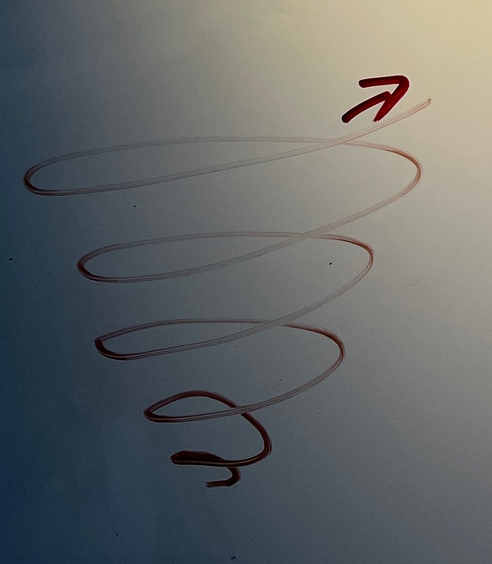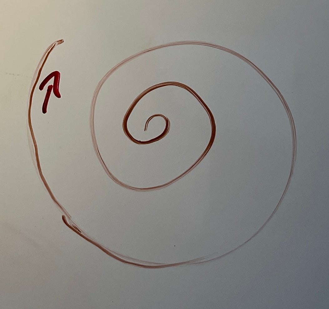 “You are spiraling.” I’ve heard that many times in the last ten years. Never as a good thing. Spirals are a good thing. I’ll try to convince you.